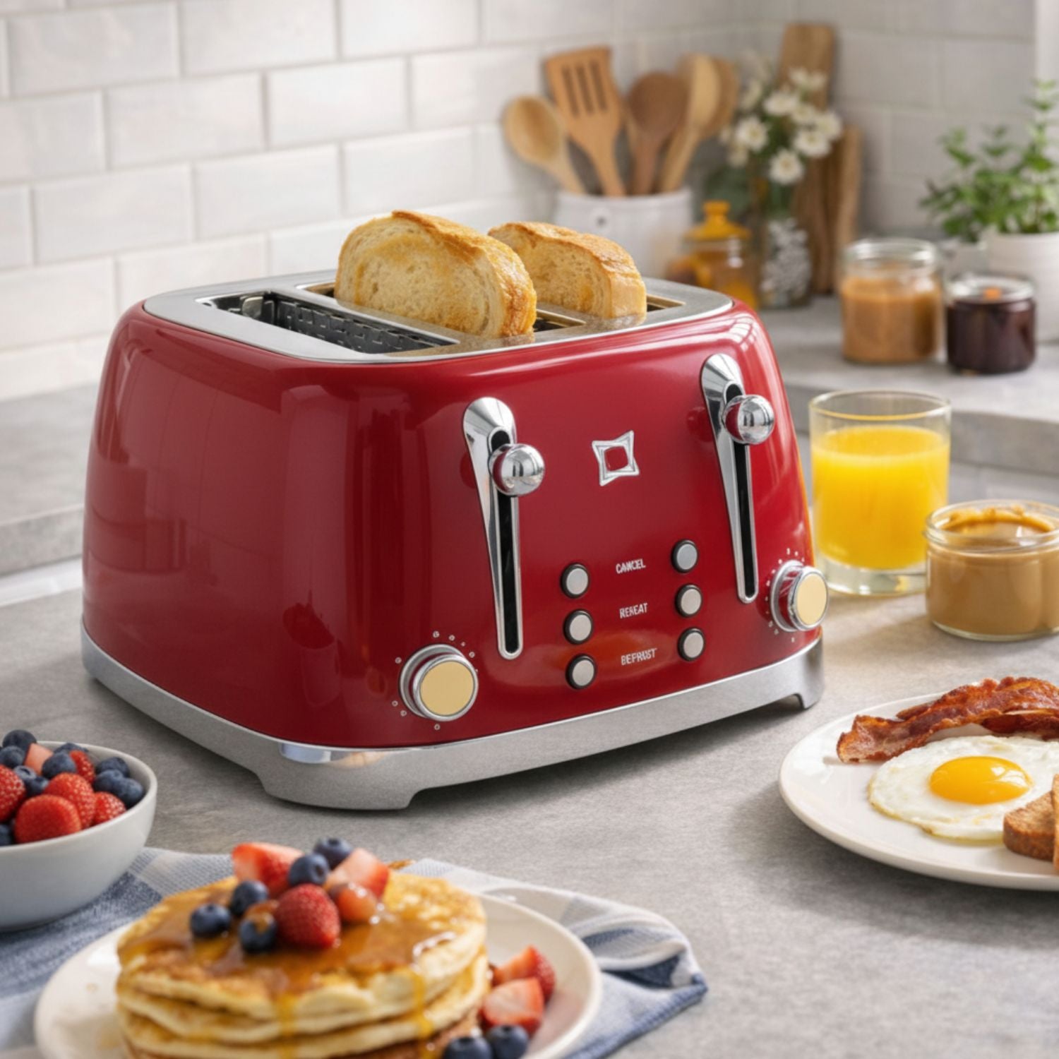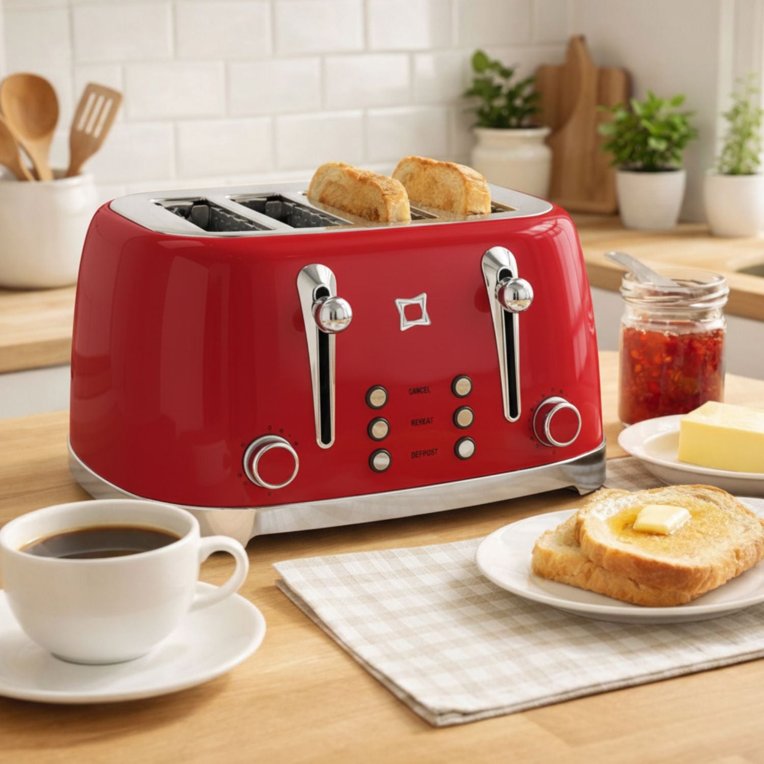 Il tostapane a quattro fette TPST201 è la scelta ideale per chi ama condividere la colazione con tutta la famiglia. Potente, pratico e versatile, permette di preparare più toast contemporaneamente senza rinunciare a una tostatura uniforme e controllata.
