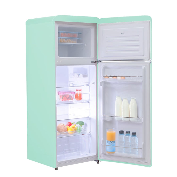 Ripiani rimovibili e cassetto frutta e verdura: dotato di 3 ripiani rimovibili, posizionabili su vari livelli, regolabili per adattarsi alle tue esigenze di conservazione. Il cassetto frutta e verdura aiuta a preservare l'umidità per frutta e verdura, mantenendole succose e fresche. Porta con balcone per bottiglie e balcone piccolo in alto.