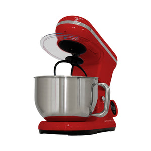 Impastatrice con display digitale, 8 velocità , Timer digitale, Testa sollevabile, potenza 1200 watt max, 6 velocità di rotazione planetaria, funzione pulse, ciotola in acciaio 5,2 litri, Coperchio paraschizzi,sbattitore in acciaio, Gancio impastatore, sbattitore IN TEFLON, Colore Rosso, Misure 25X33X37,5