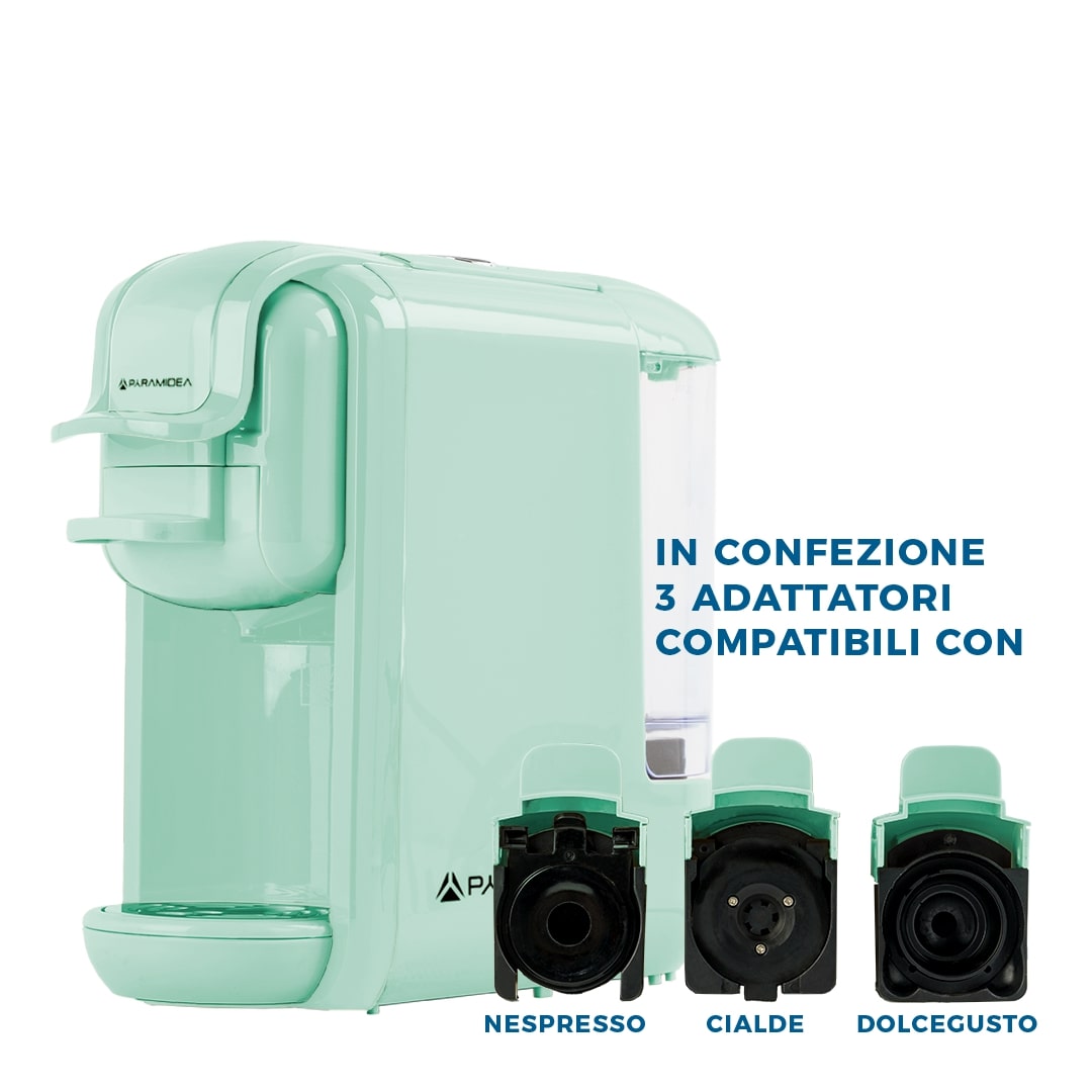 PYRAMIDEA Macchina per Caffè 3 in 1 Compatibile Nespresso Dolcegusto e Cialde Bevande Fredde da 0,6L Verde
