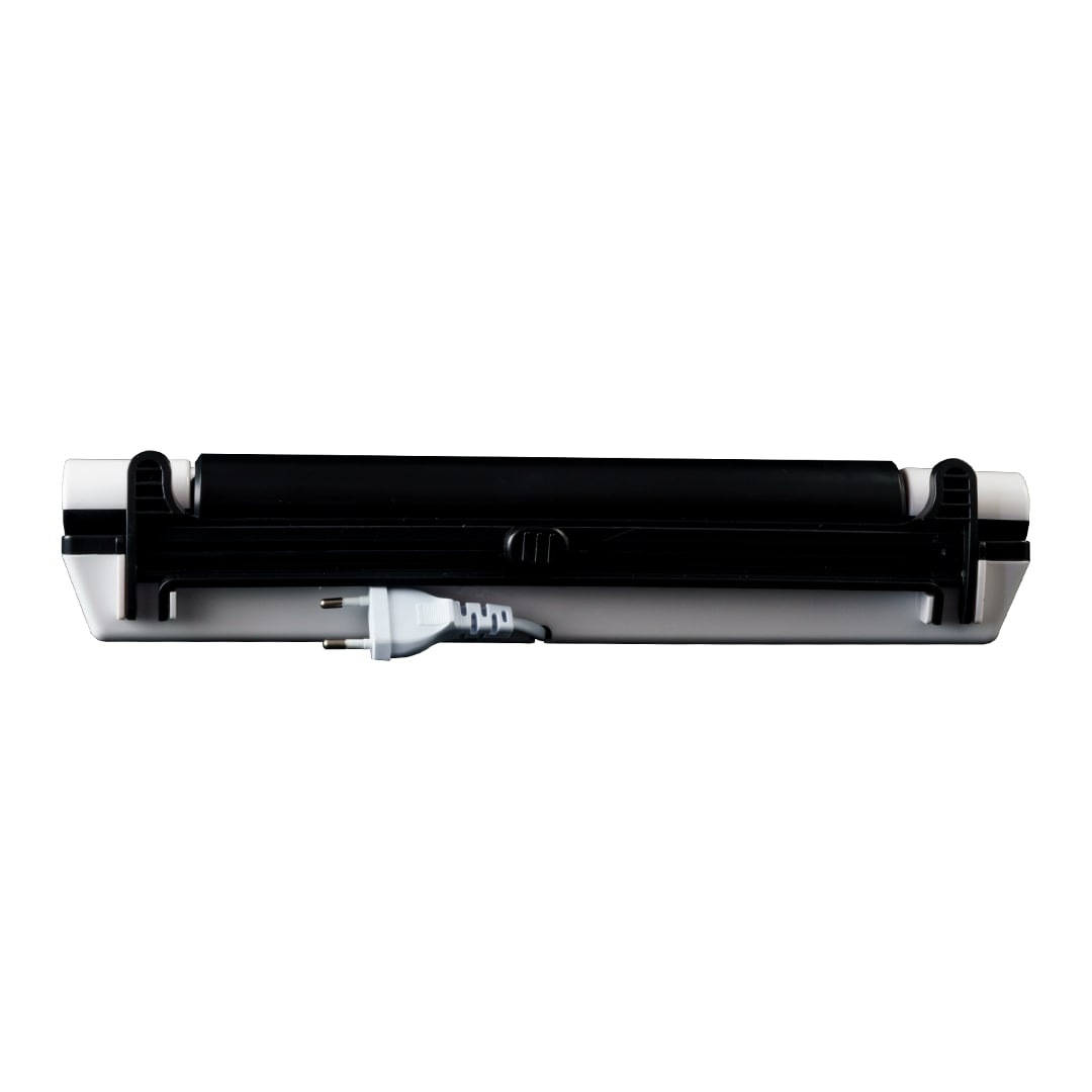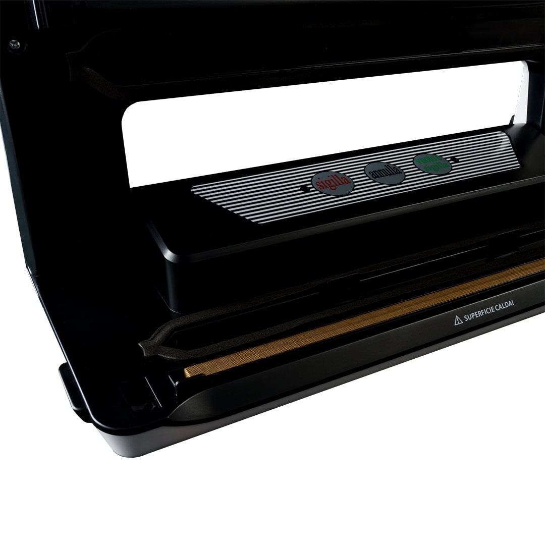 Aspirazione d'aria automatica: 11 litri/minuto Valore max del vuoto 55 Kpa Doppia funzione: aspira e sigilla Lunghezza barra sigillante 28cm Rotolo sacchetti in dotazione Taglierina per sacchetti